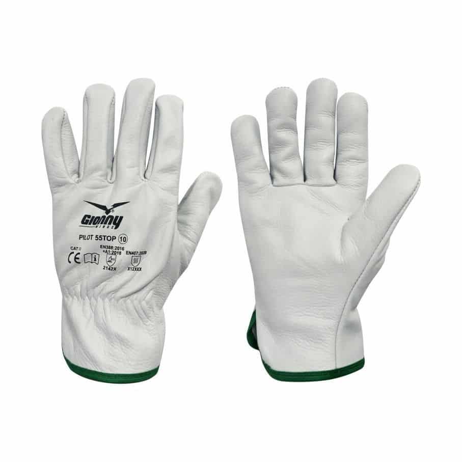 Handschuh aus Rindvollnarbenleder, gesäumt. Gummizug am Handgelenk. – Eigenschaften: weich, unempfindlich, strapazierfähig – Stärken: Tragekomfort, Tastgefühl – Einsatzbereiche: allgemeine Arbeiten in trockener Umgebung. Mindestverkaufsmenge: 1 Dutzend (12 Paar). Der Saum hat je nach Größe eine andere Farbe.