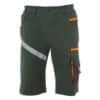 Unisex-Bermudashorts, 4-Way-Stretch, seitlicher Gummizug und Gürtelschlaufen, Hosenschlitz mit Reißverschluss, personalisierter Knopf. Auf der Vorderseite 2 abgerundete Taschen, 1 Münztäschchen auf der rechten Seite und 1 Sicherheitstasche mit Reißverschluss auf der linken Seite. Auf der Vorderseite des linken Beins befinden sich 3 Taschen: 1 waagrechte Tasche mit Reißverschluss, 1 Tasche mit geformter Patte, Klettverschluss und Ausweisfach, 1 kleine senkrechte Tasche mit Reißverschluss. Reflektierender Streifen auf der Vorderseite des rechten Beins. Rückseite: 1 Tasche mit Patte und Klettverschluss und 1 Tasche ohne Patte, aber mit 2 reflektierenden Streifen, 1 Hammerschlaufe (rechtes Bein), 1 offene Zollstocktasche (rechtes Bein) und 1 Handytasche mit Patte und Klettverschluss (rechtes Bein). Außerdem seitliche Nähte und Quernähte zur Verstärkung an verschiedenen Stellen in Kontrastfarbe. Die mittleren (italienischen) Größen 48-50-52 besitzen eine Innenbeinlänge von 31 cm.