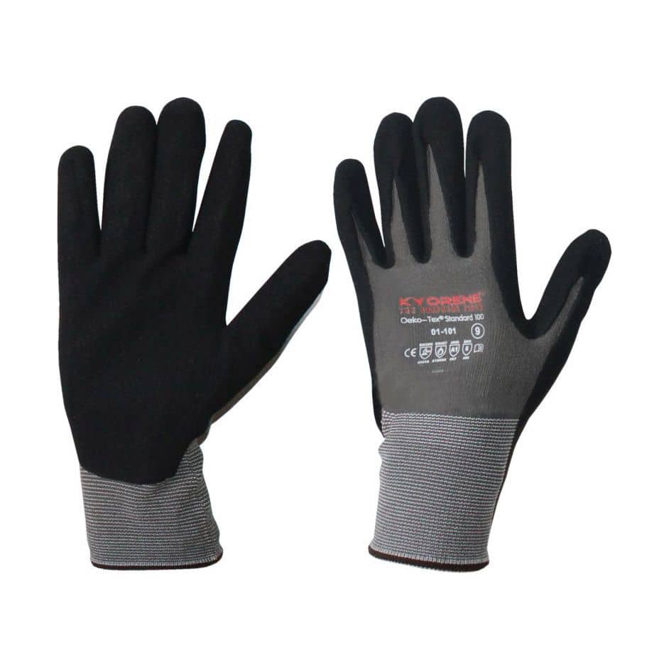 Schnittschutzhandschuhe KYORENE liner 15G, belüfteter Handrücken, Strickbündchen, Nitrilbeschichtung – Eigenschaften: unempfindlich – Stärken: Komfort, Griff, Tastgefühl, Präzision, schnittfest – Einsatzbereiche: Handhabung und Montage von scharfkantigen, trockenen oder leicht öligen Werkstücken.