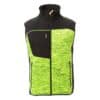 Technische Strickweste mit schwarzen Softshell-Einsätzen, zweifarbig, versiegelter Reißverschluss „Semi-Auto-Lock“-Metallschieber und personalisiertem Schiebergriff. Feiner Saum an Handgelenk und Taille, 2 Seitentaschen mit Reißverschluss, 1 Brusttasche.