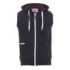 Herren-Sweatweste, durchgehender 2-Wege-Reißverschluss aus Kunststoff in Kontrastfarbe mit Metallschieber, vorgeformte Kapuze und Kordelzug in Kontrastfarbe, Kängurutaschen, Reißverschlusstäschchen.